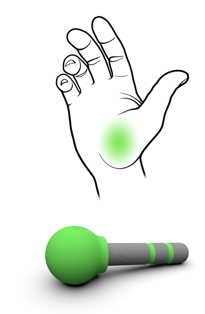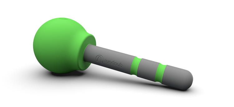 The Broadnub, similar in shape to the palm of a hand, allows you to target larger areas of muscle that are knotted, tight. It's the least aggressive of the three Wodnubs. It's roughly the diameter of a lacrosse ball.